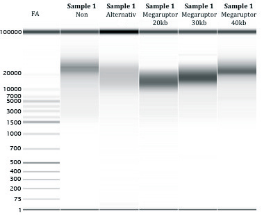 Megaruptor的完美设计,使其具有简单化、自动化、高重复性,可以获得2 kb - 75 kb长度的DNA片段。剪切性能卓越,不受DNA样品来源、集中度、温度、盐浓度的限制,完全符合了科研人员的实验要求。同时,在无人员值守的情况下,友好的软件系统可以允许两个样品相继被片段化处理,不存在交叉污染。
